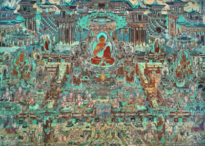 Within the honeycombed cliffs of Dunhuang’s Mogao Caves, many generations of monks, artists, and pilgrims created a treasure trove of mural paintings and sculptures, documenting a thousand years of life and rituals on the Silk Road. Their endless pursuit of spiritual truths and enlightenment is revealed in paintings of numerous Buddhist stories and documented manuscripts. They vividly portray a place alive with East and West mingling in diversity, curiosity, and creativity.